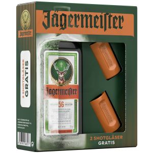 Jägermeister 0,7l + 2 Orange Shot Glasses